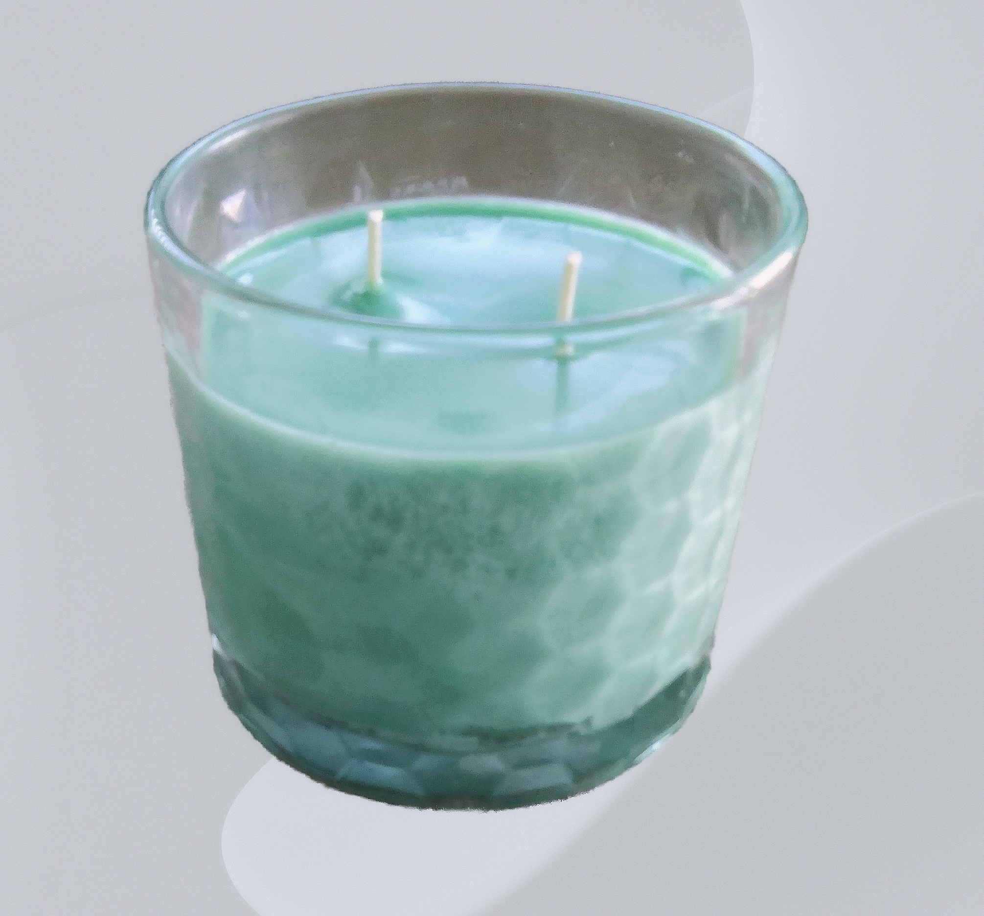 Three colors associated with the coast - off white, green and blue are each represented in a candle in this collection. Each candle is individually hand crafted from an all natural coconut/soy blend wax. They have two wicks for a better burn. The container is a heavy glass jar with a honeycomb pattern that holds 18 oz.